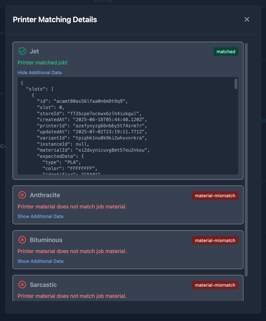 Gutenb3d's intelligent matching system considers multiple factors when assigning jobs to printers: